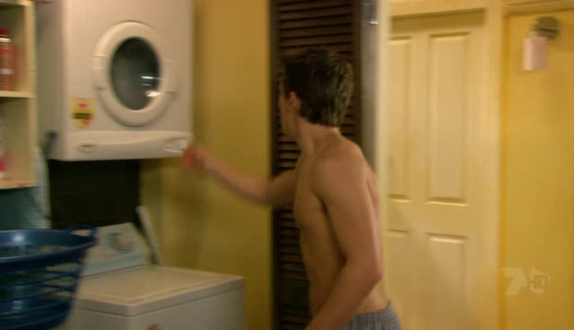 Hugh Sheridan (Ben) and George Houvardas (Carbo) have to improvise to get their clothes dry before potential housemate Mel pops over. Queue a gratuitous shirtless scene.