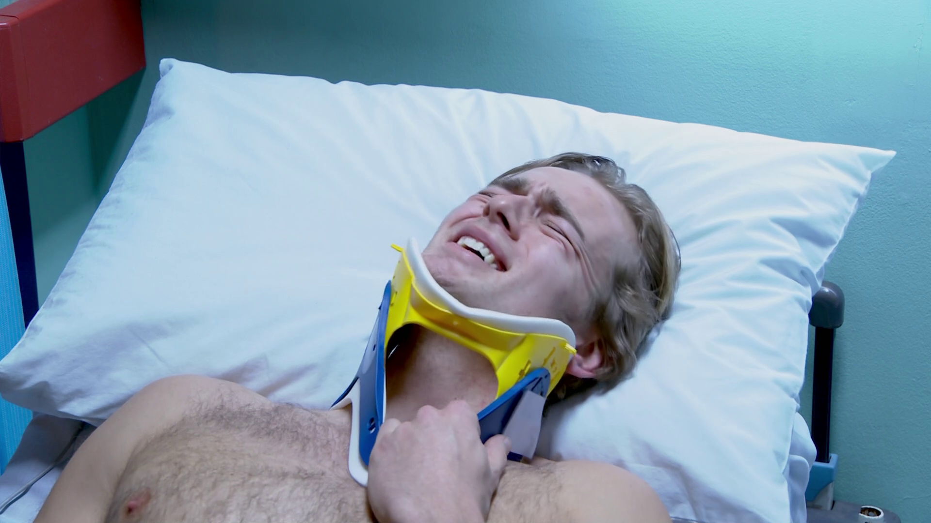 stripping off it takes a turn for the worst when Peter trips and falls!